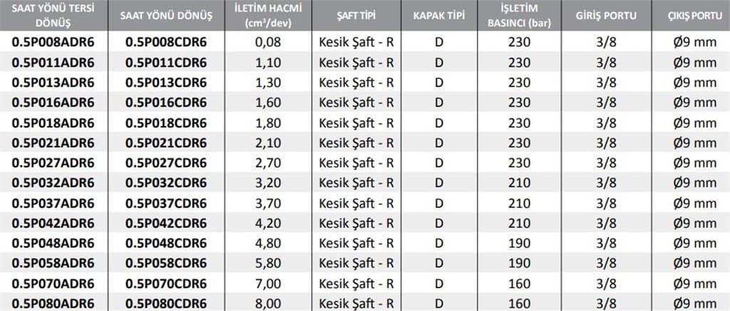 0.5P Powerpack Hidrolik Dişli Pompa Sol Dönüş - 1,10 cm³/dev