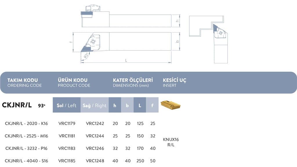 C SİSTEM SAĞ DIŞ TORNA KATERİ 93°- CKJNR/L - 2525 - M16