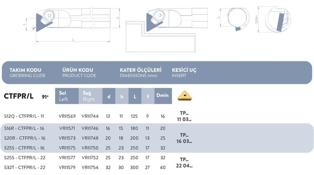 C SİSTEM SOL DELİK TORNA KATERİ 91° S32T-CTFPR/L-22