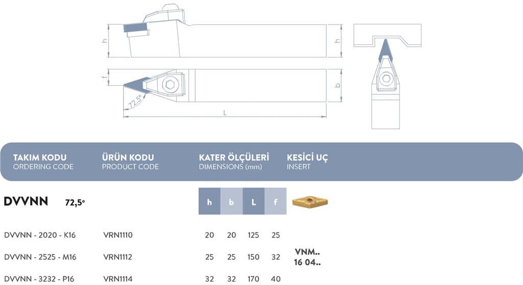 D SİSTEM DIŞ TORNA KATERİ 72,5°- DVVNN - 2525 - M16