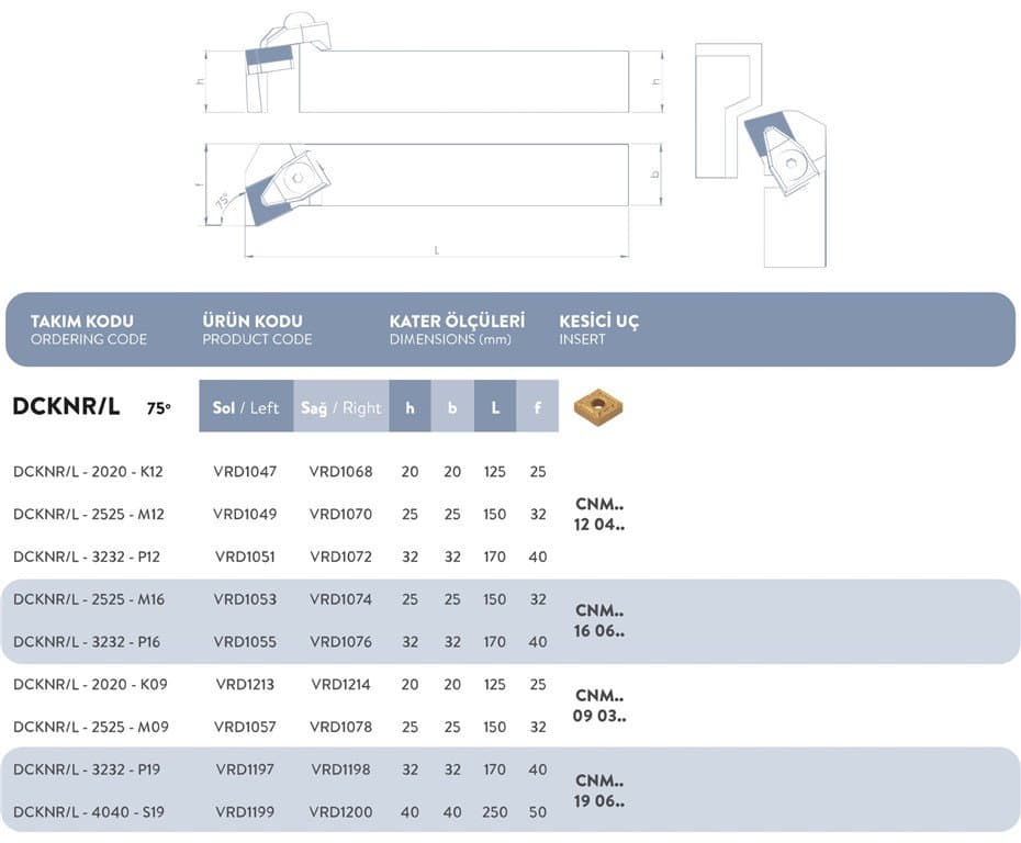 D SİSTEM SAĞ DIŞ TORNA KATERİ 75° - DCKNR/L - 4040 - S19