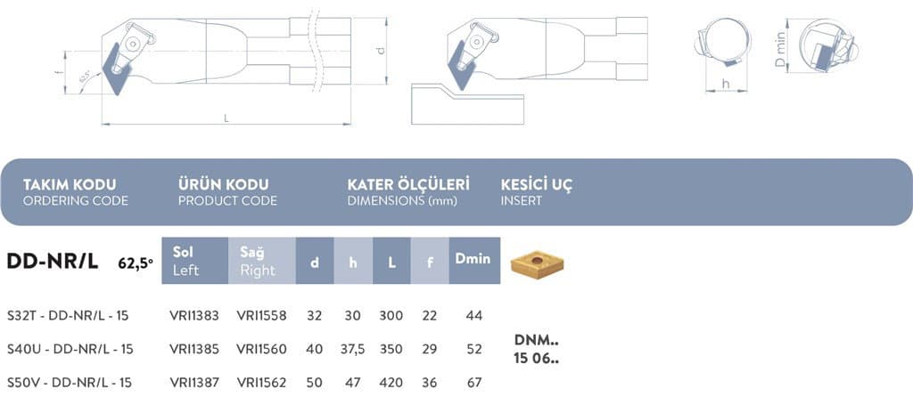 D SİSTEM SOL DELİK TORNA KATERİ 62,5° S32T - DD-NR/L - 15