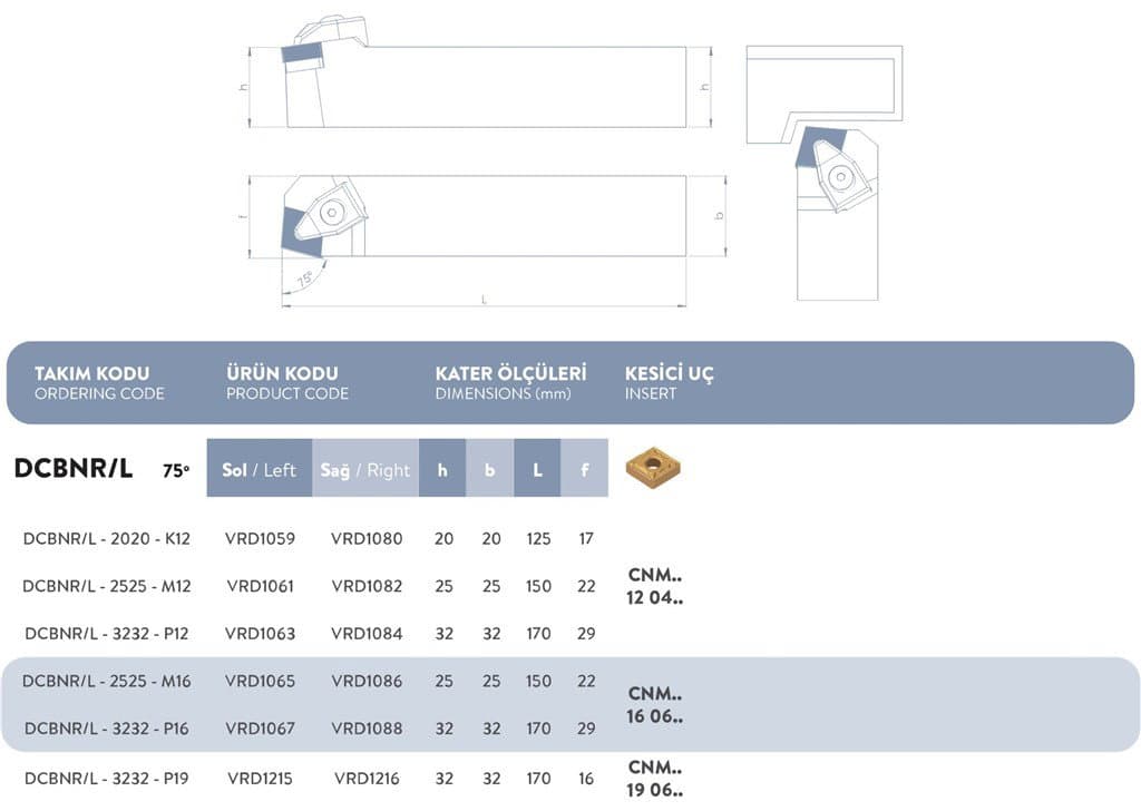 D SİSTEM SOL DIŞ TORNA KATERİ 75°- DCBNR/L - 3232 - P16