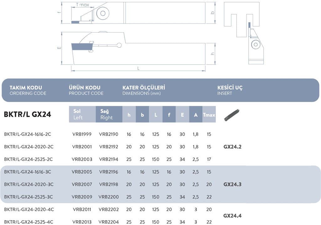 DIŞ ÇAP SAĞ KANAL AÇMA TAKIMI BKTR/L-GX24-2020-4C