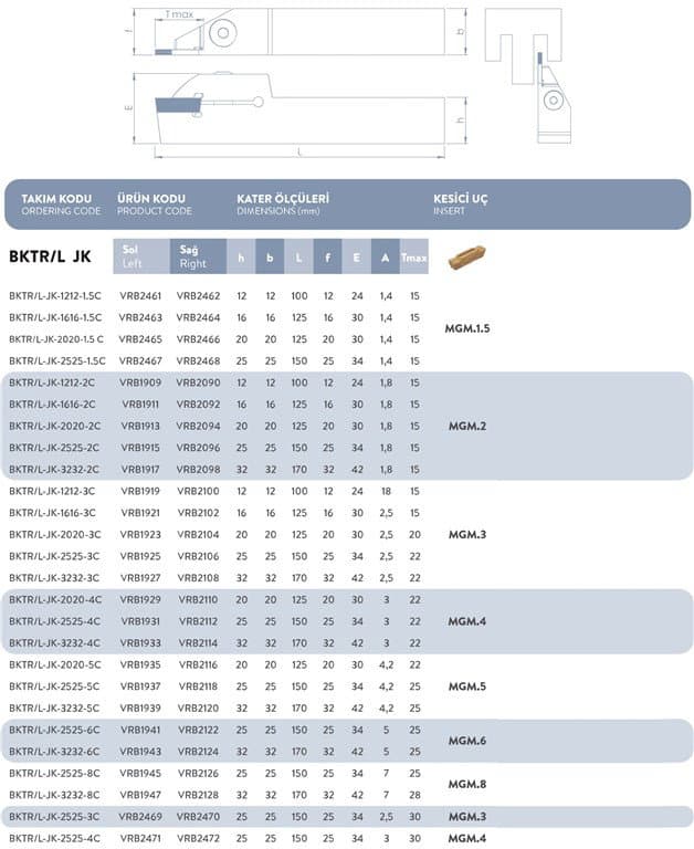 DIŞ ÇAP SAĞ KANAL AÇMA TAKIMI BKTR/L-JK-3232-4C