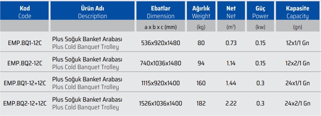 EMPERO PLUS EMP.BQ2-12C SOĞUK BANKET ARABASI