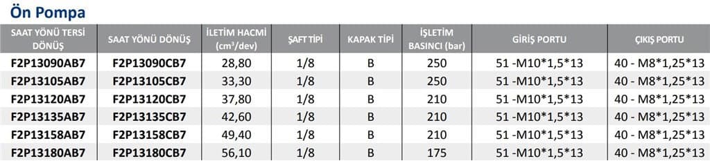 F2P1 Serisi Hidrolik Dişli Pompa Sol Dönüş - 56,10 cm³/dev