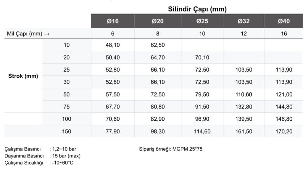 FİRETECH MGPM SERİSİ Ø25 ÜÇ MİLLİ YATAKLI MANYETİK SİLİNDİR
