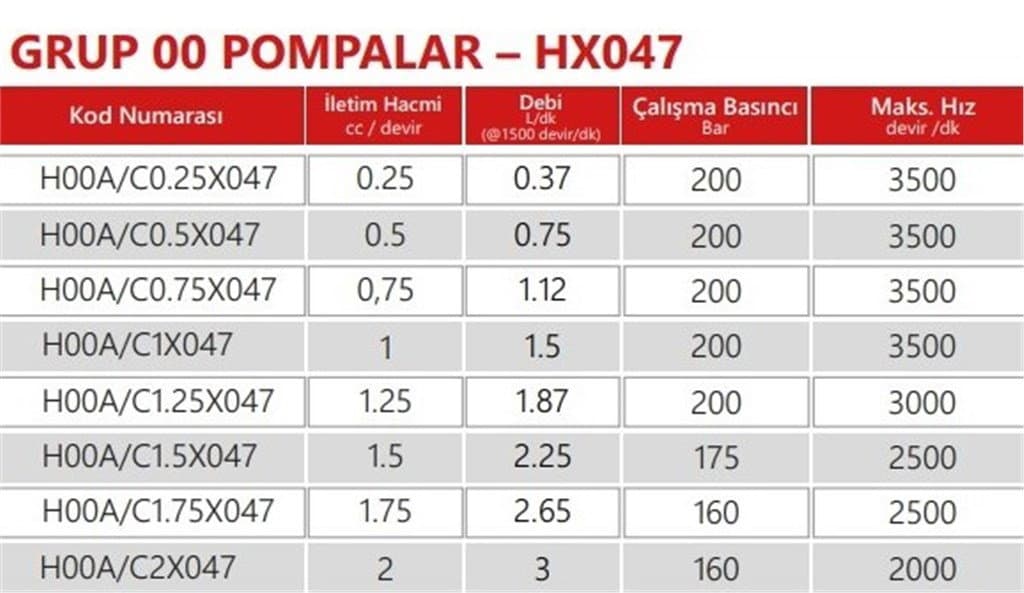 Grup 00-HX047 Hidrolik Dişli Pompa Sol Dönüş - 2,0 cc/devir