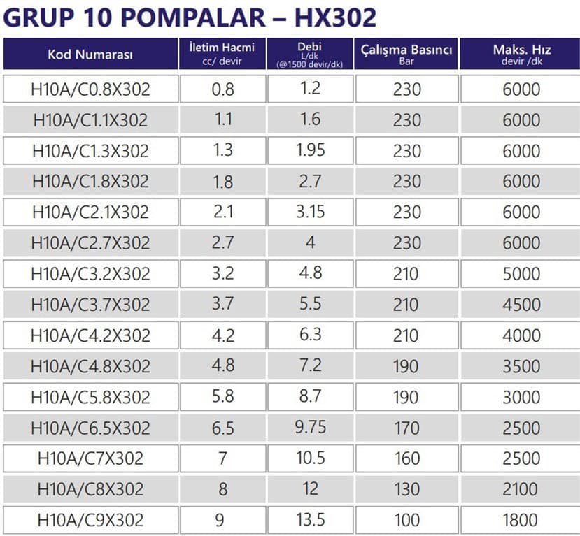 Grup 10-HX302 Hidrolik Dişli Pompa Sol Dönüş - 1,1 cc/devir