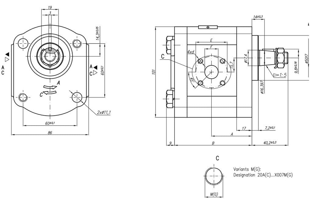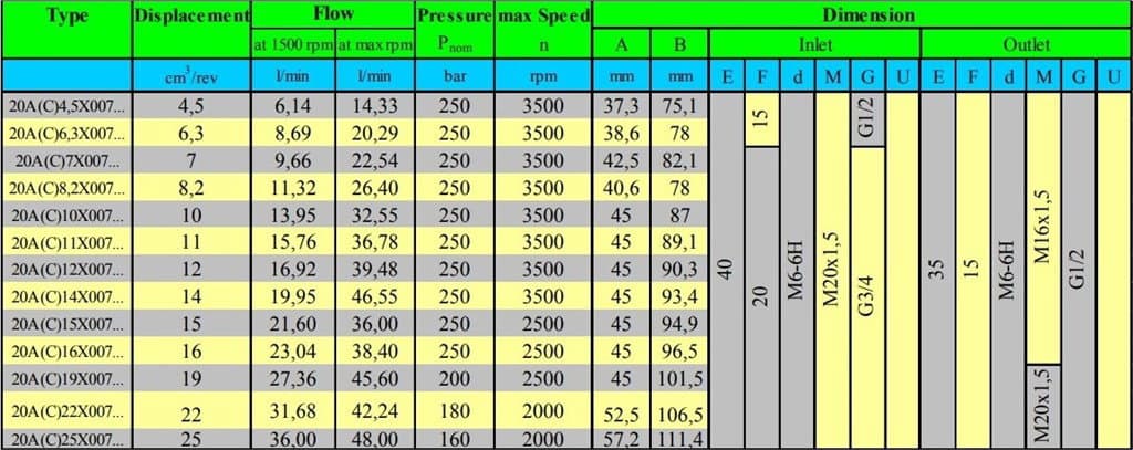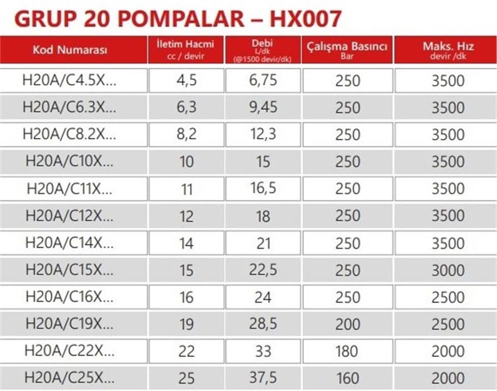 Grup 20-HX007 Hidrolik Dişli Pompa Sol Dönüş - 6,3 cc/devir