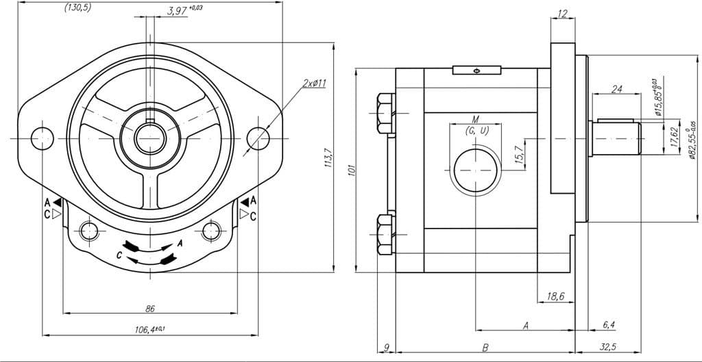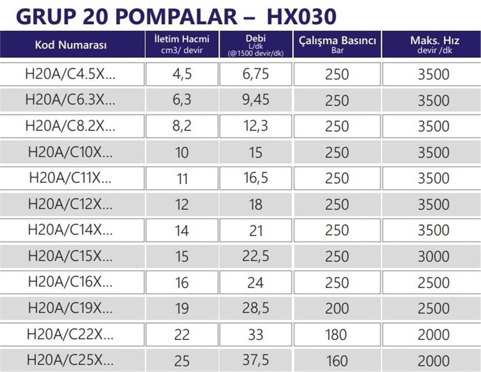 Grup 20-HX030 Hidrolik Dişli Pompa Sol Dönüş - 14 cc/devir