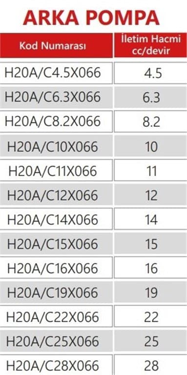 Grup 20-HX066 Hidrolik Dişli Pompa Sol Dönüş - 6,3 cc/devir
