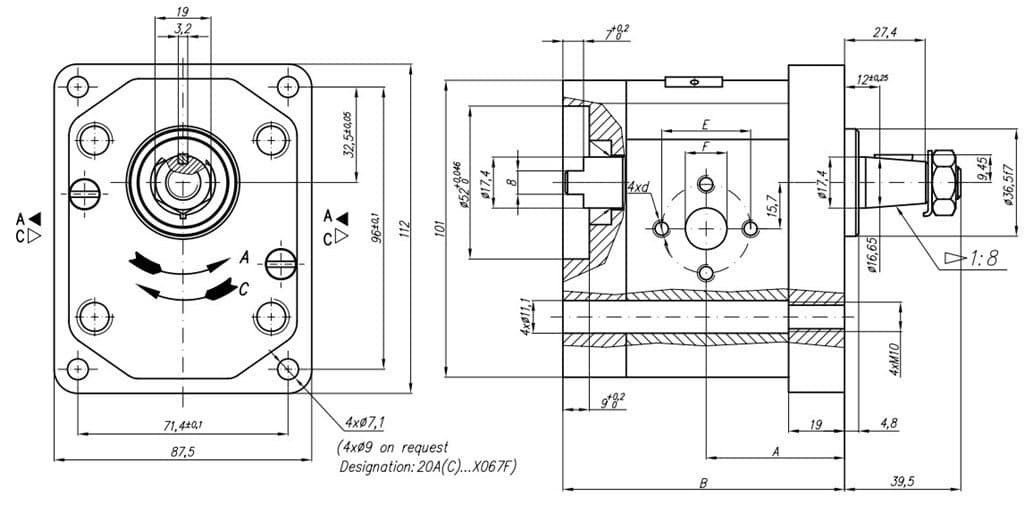 Grup 20-HX067 Hidrolik Dişli Pompa Sağ Dönüş-14 cc/dev