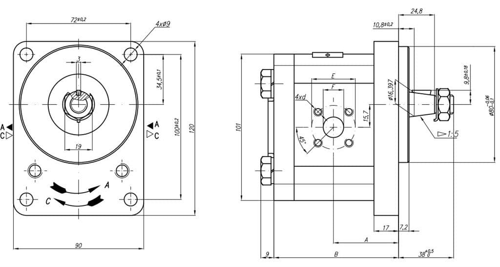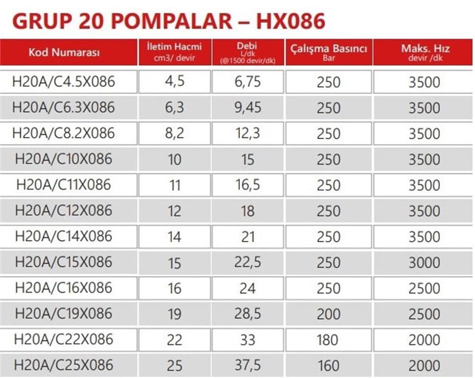 Grup 20-HX086 Hidrolik Dişli Pompa Sol Dönüş - 11 cc/devir