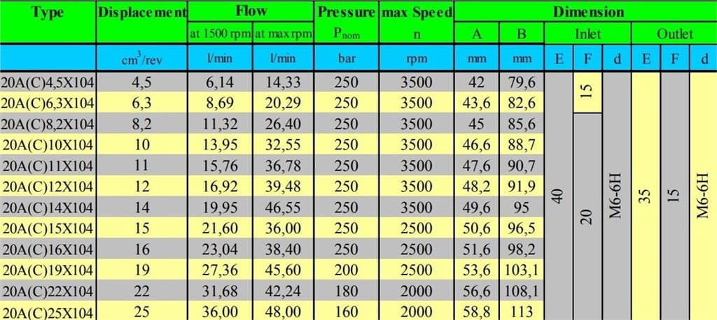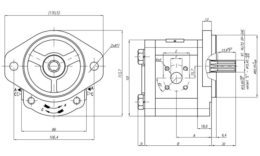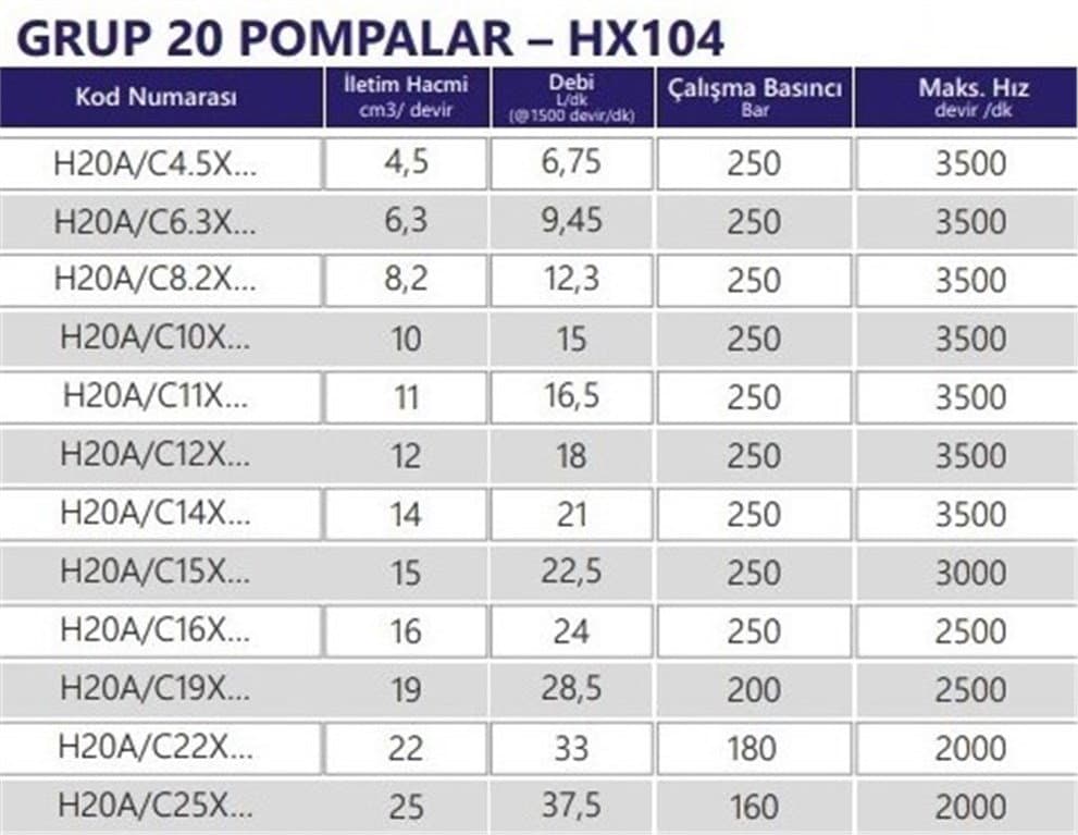 Grup 20-HX104 Hidrolik Dişli Pompa Sağ Dönüş - 4,5 cc/devir