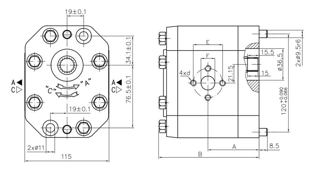 Grup 30-HX242 Hidrolik Dişli Pompa Sol Dönüş - 50 cc/devir