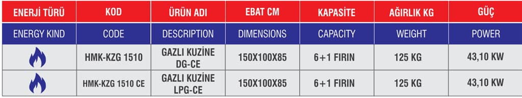 HİMAKSAN GAZLI KUZİNE HMK-KZG 1510 CE