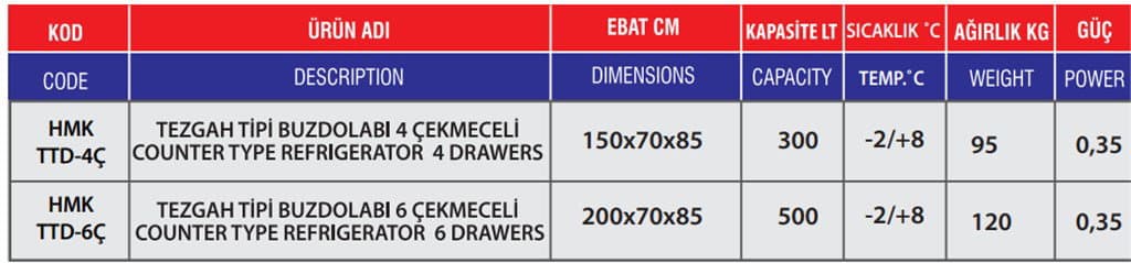 HİMAKSAN TEZGAH TİPİ 6 ÇEKMECELİ ENDÜSTRİYEL BUZDOLABI 430 KALİTE