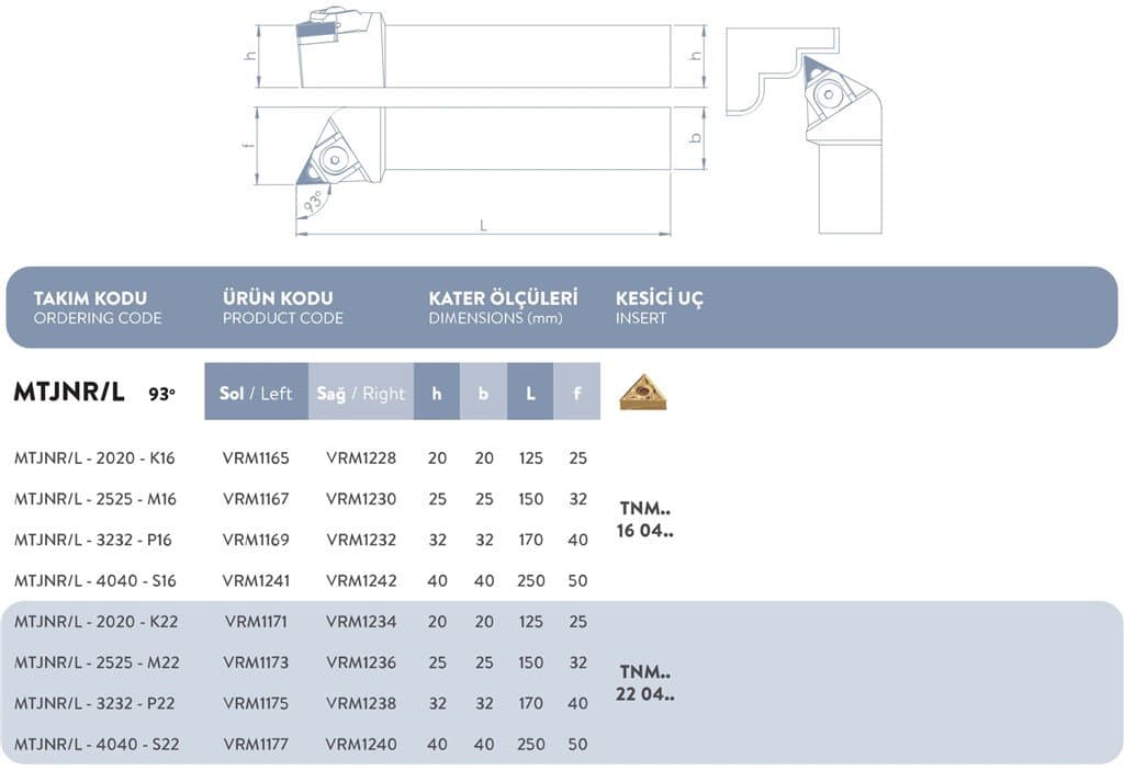 M SİSTEM SAĞ DIŞ TORNA KATERİ 93°- MTJNR/L - 3232 - P22
