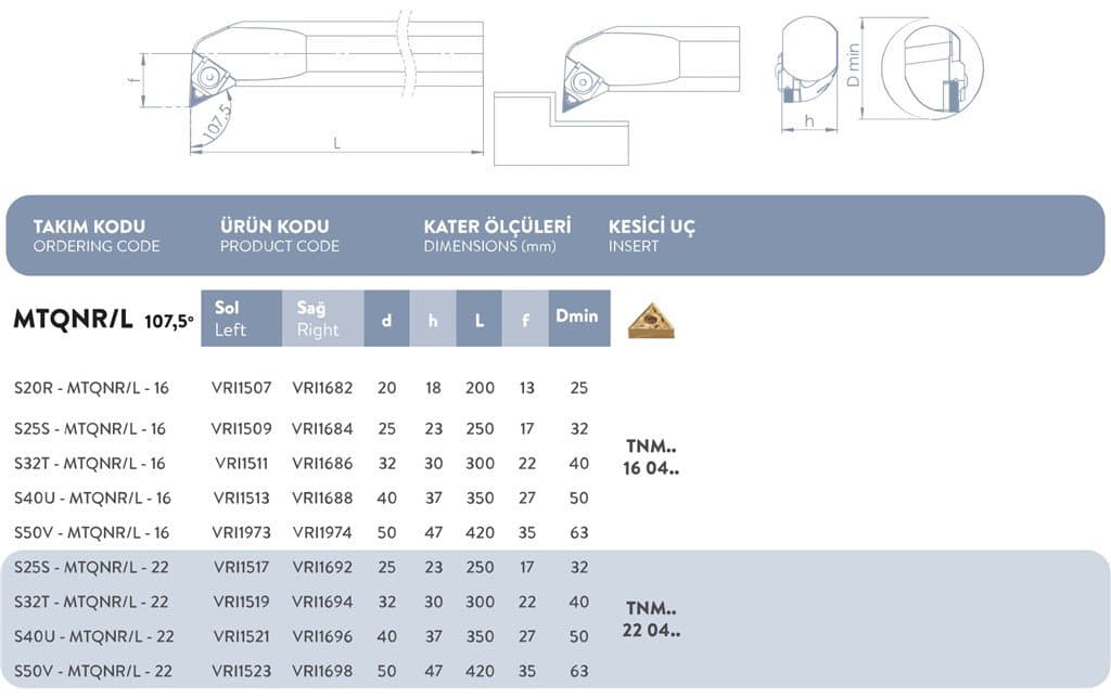 M SİSTEM SOL DELİK TORNA KATERİ 107,5° S50V - MTQNR/L - 22
