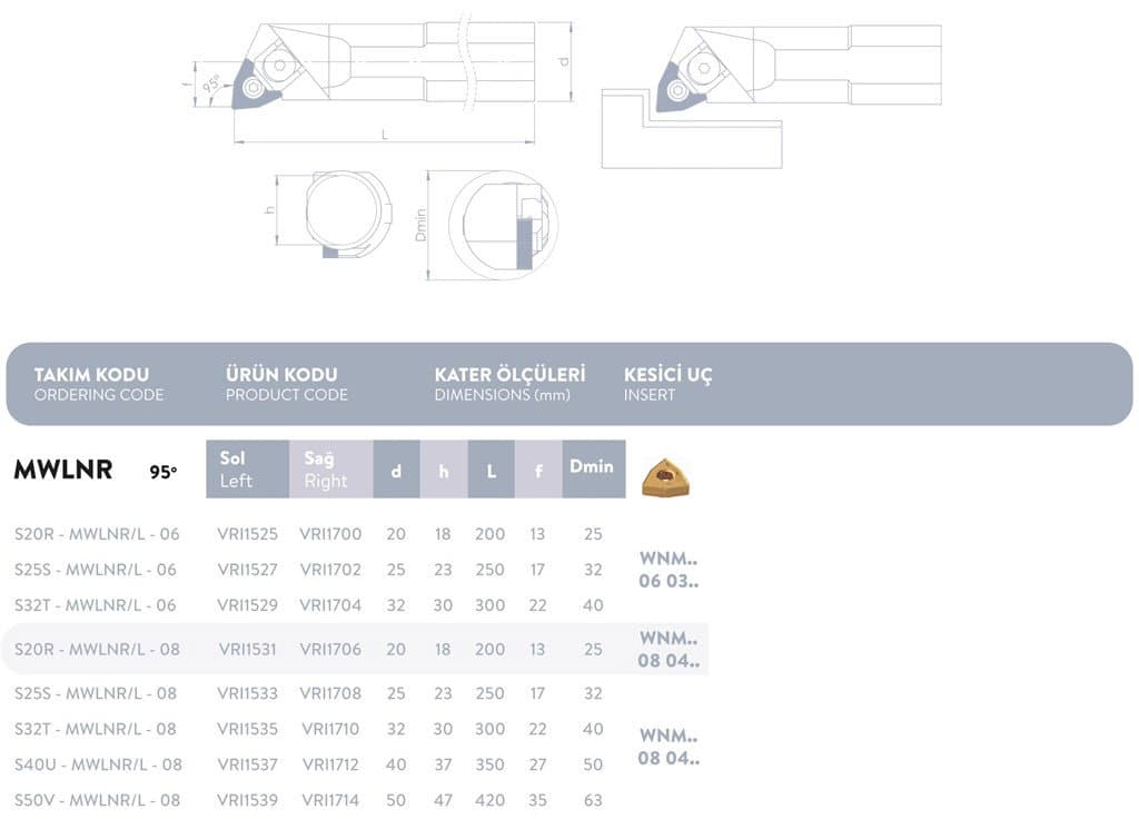 M SİSTEM SOL DELİK TORNA KATERİ 95° S50V - MWLNR/L - 8