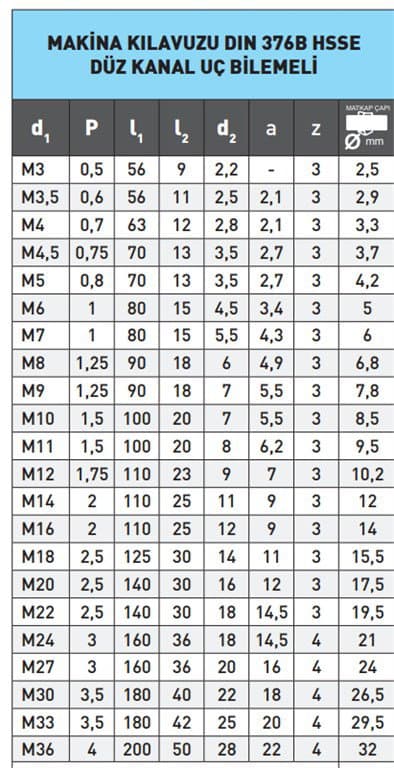 Ana Özellikler DIN 376B HSSE DÜZ KANAL UÇ BİLEMELİ