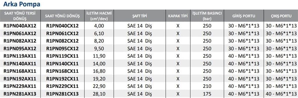 R1PN Serisi Hidrolik Dişli Pompa Sol Dönüş - 11,90 cm³/dev