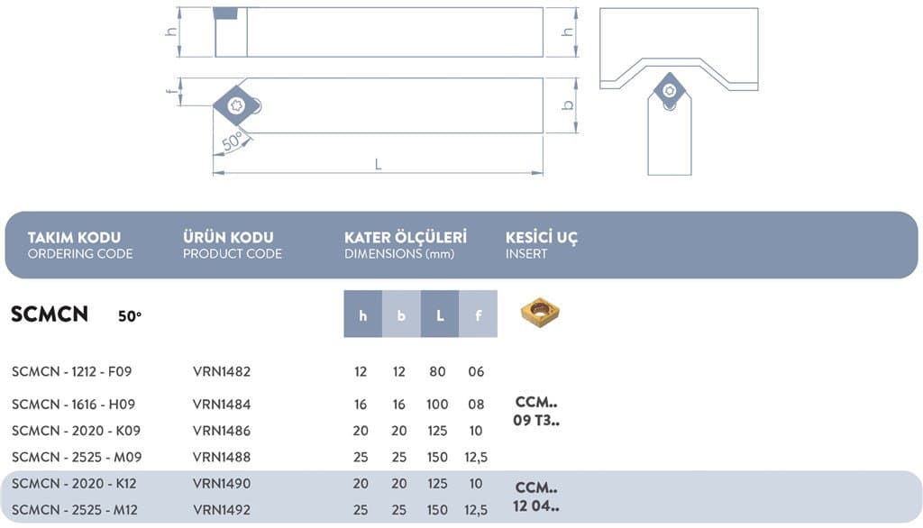 S SİSTEM DIŞ TORNA KATERİ 50° SCMCN - 2525 - M12