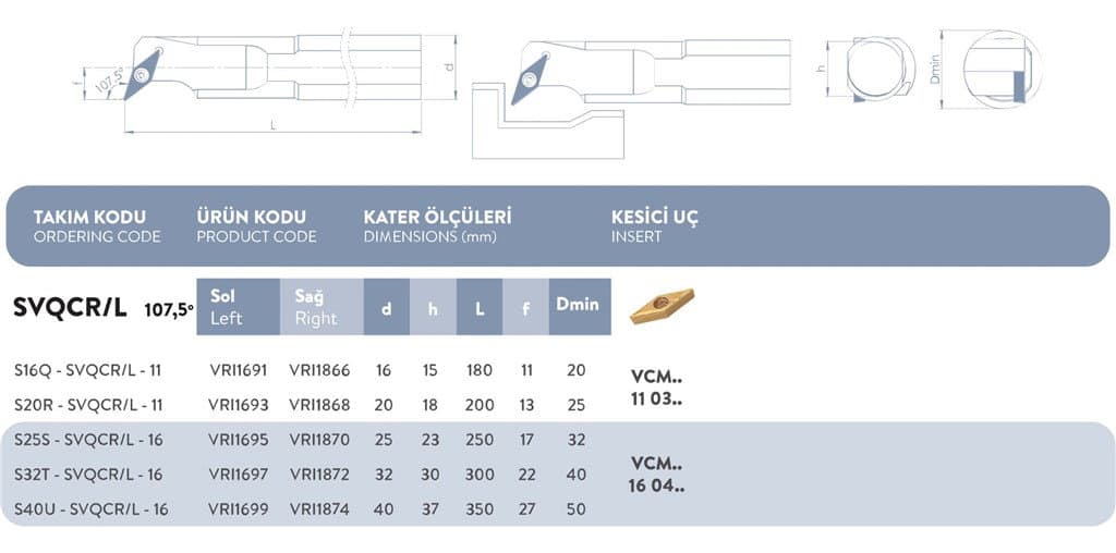 S SİSTEM SAĞ DELİK TORNA KATERİ 107,5° S16Q-SVQCR/L-11