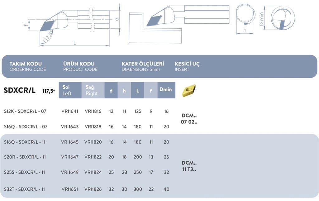 S SİSTEM SAĞ DELİK TORNA KATERİ 107,5° S32T-SDXCR/L-11