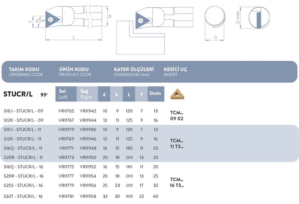 S SİSTEM SAĞ DELİK TORNA KATERİ 93° S25S-STUCR/L-16