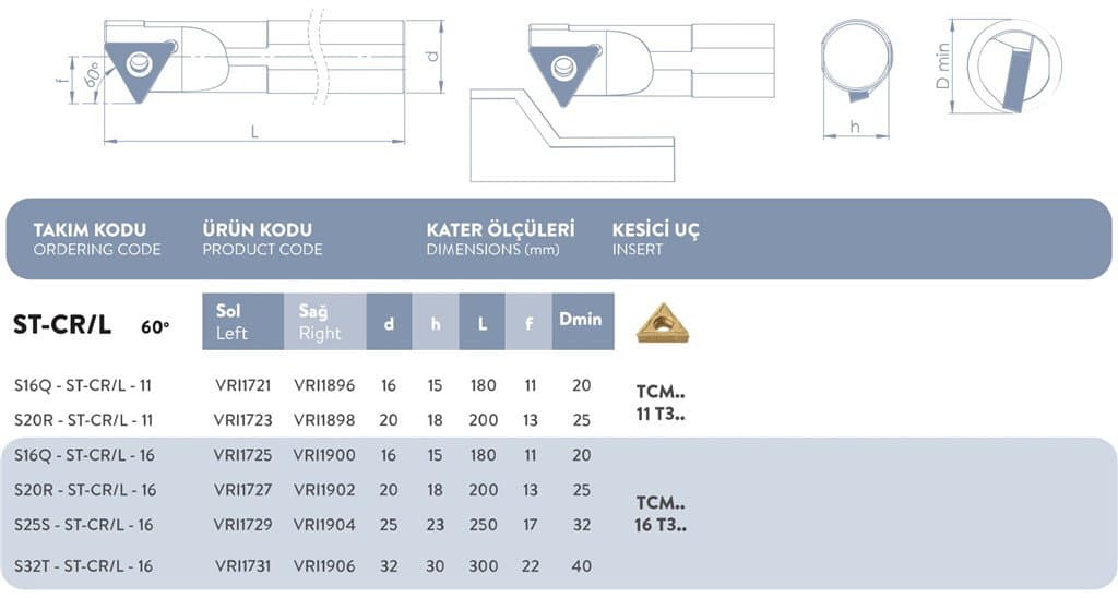 S SİSTEM SOL DELİK TORNA KATERİ 60° S20R-ST-CR/L-11