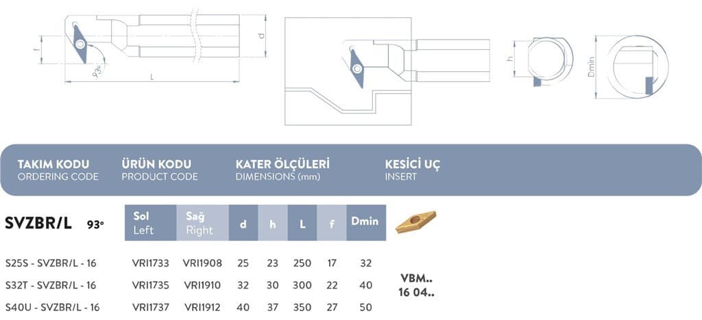 S SİSTEM SOL DELİK TORNA KATERİ 93° S40U-SVZBR/L-16