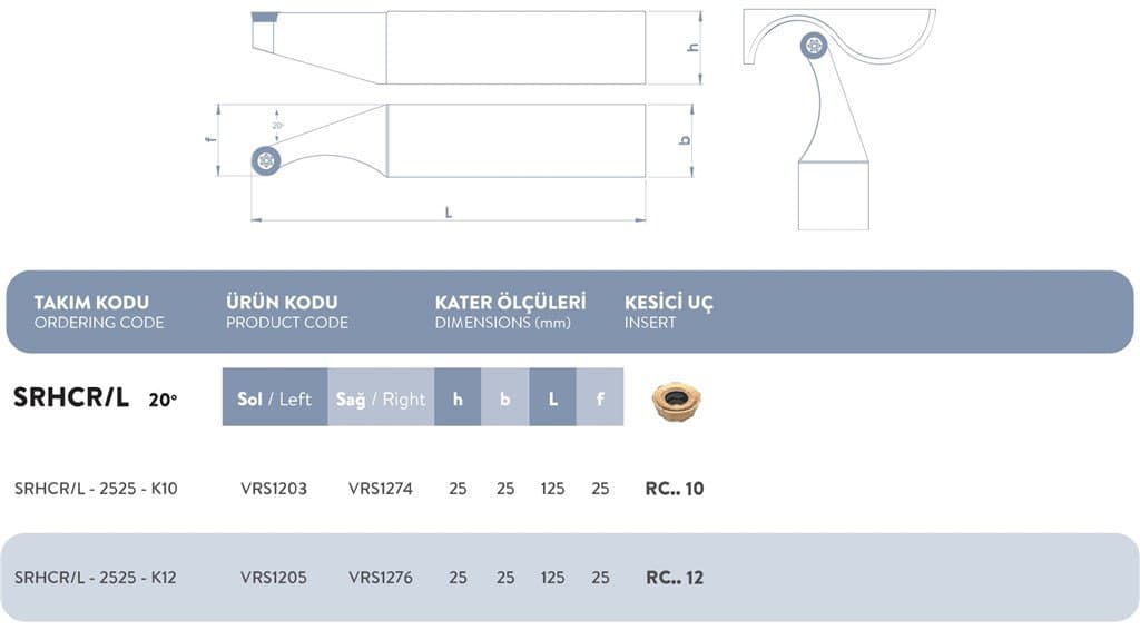 S SİSTEM SOL DIŞ TORNA KATERİ 20° SRHCR/L - 2525 - K12