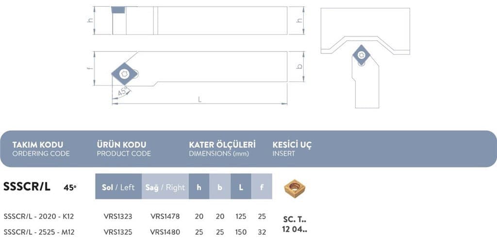 S SİSTEM SOL DIŞ TORNA KATERİ 45° SSSCR/L - 2525 - M12